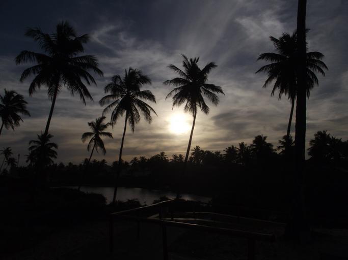 Keywords: sun beach palm trees tropical dusk dark night evening sky clouds