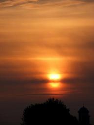 Keywords: sun cloud sky red church tree fire east