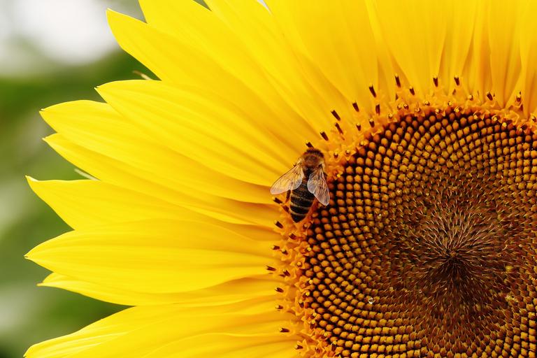 Keywords: sun flower bees summer garden blossom bloom yellow insect helianthus nature pollination close pollen macro sunny sun plant helianthus annuus flower seeds