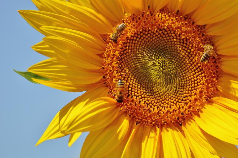 Keywords: sun flower bees summer garden blossom bloom yellow insect helianthus nature pollination close pollen macro sunny sun plant helianthus annuus flower seeds