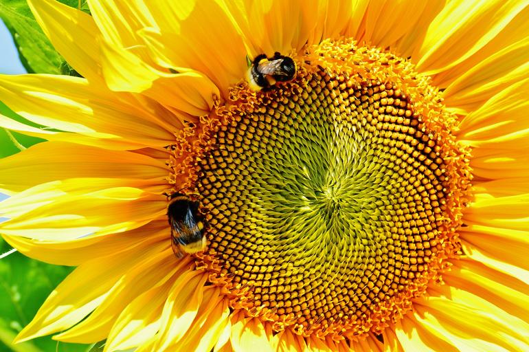 Keywords: sun flower bumblebees summer garden blossom bloom yellow insect helianthus nature pollination close pollen macro sunny sun plant helianthus annuus flower fictional seeds