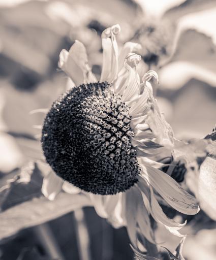 Keywords: sun flower helianthus annuus blossom bloom close macro black and white monochrome sw black and white photo retro look