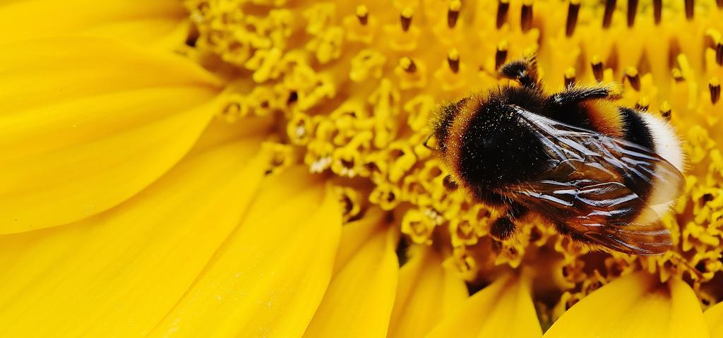 Keywords: sun flower hummel summer garden blossom bloom yellow insect helianthus nature pollination close pollen macro sunny sun plant helianthus annuus flower seeds