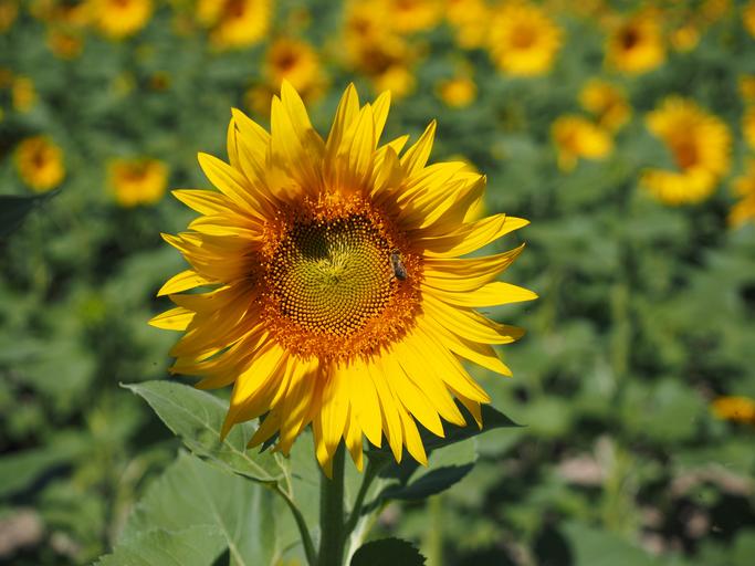 Keywords: sun flower inflorescence flower basket flower blossom bloom yellow tongue flower tubular flowers helianthus annuus nature plant beautiful sunny colorful bright macro close bee pollen collect