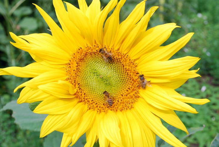 Keywords: sun flower summer sun bee field garden arable close honey blossom bloom yellow plant flower bloom