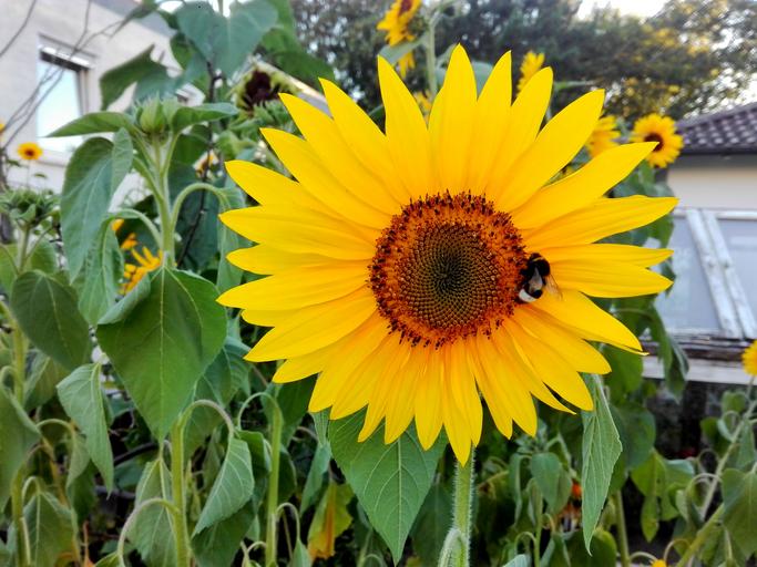 Keywords: sun flower yellow close blossom bloom summer flower macro plant