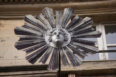 Keywords: sun sculpture art decoration home metal wrought iron reflections shiny facade iron wall