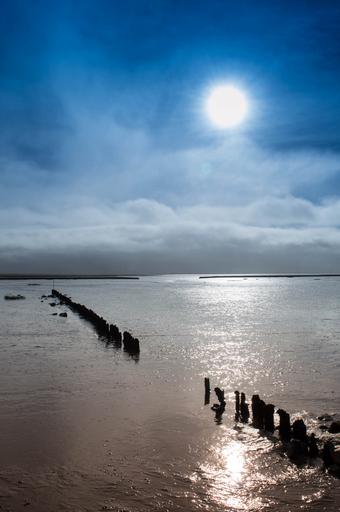 Keywords: sun sea piles clouds coast beach back light sky sunset sun and sea north sea