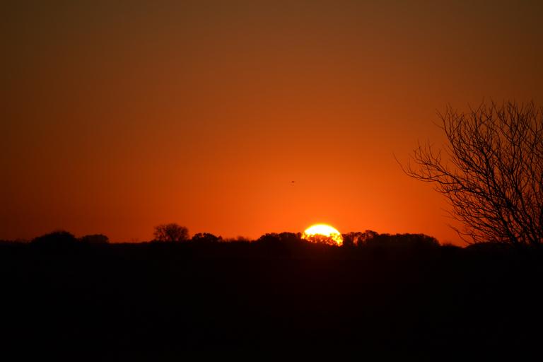 Keywords: sun setting sun sunset orange sky without clouds silhouettes horizon