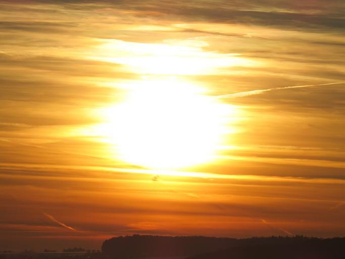 Keywords: sun sunset yellow golden fireball back light mood romance abendstimmung sky clouds