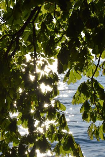 Keywords: sun water tree light leaves lake lake constance nature summer