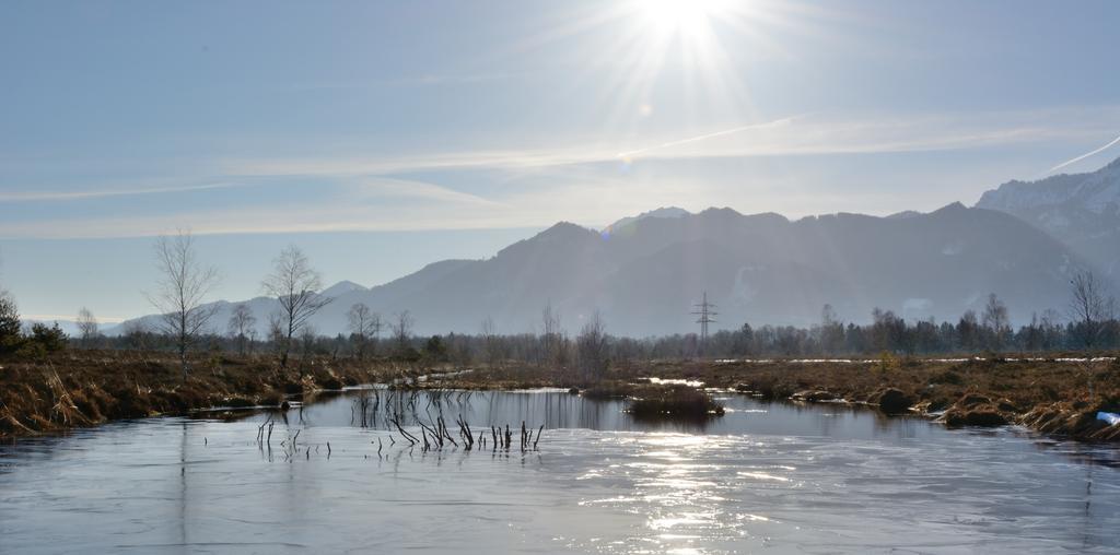Keywords: sunbeam landscape lake mountains chiemgau sunlight autumn mood morgenstimmung atmosphere bright rays sun sky nature cold