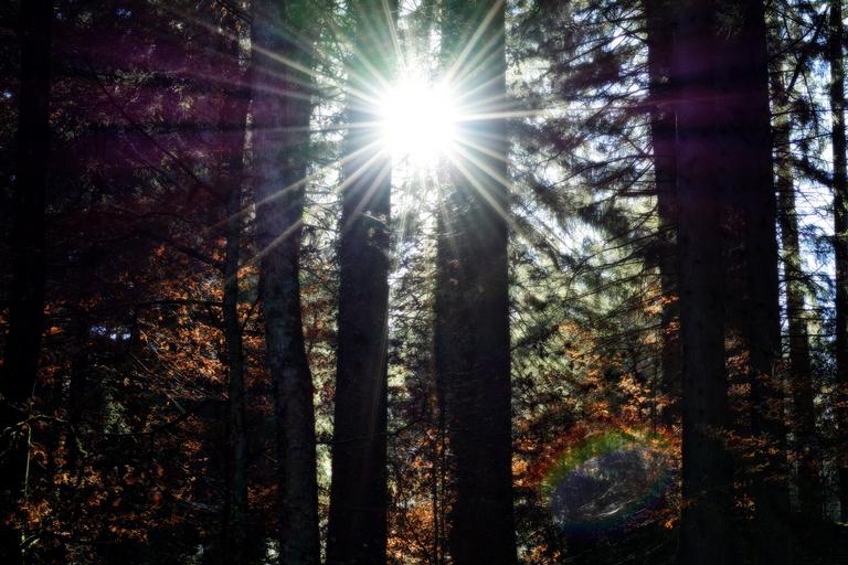 Keywords: sunbeam sunlight rays light mood back light nature trees sun live force silhouette