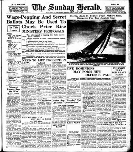 Keywords: Sunday herald 23 January 1949.jpg Coverpage of a historic newspaper from New South Wales Australia http //trove nla gov au/ndp/del/titles state New 20South 20Wales before 1955 PD-Australia Newspapers of New South Wales SLNSW media uploaded by User 99of9 |