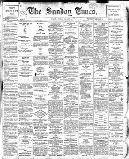 | Keywords: Sunday Times 6 January 1895.PNG en Front cover of the Sunday Times Sydney Australia on 6 January 1895 2013-11-07 09 46 40 http //trove nla gov au/ndp/del/title/505 Sunday Times Custom license marker 2013 11 06 PD-Australia Uploaded with UploadWizard Newspapers of New South Wales Newspapers digitized by the National Library of Australia |