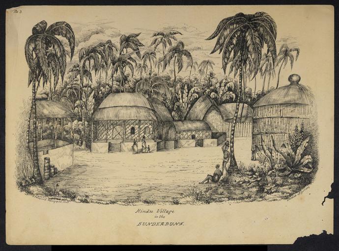 Keywords: Sunderbans village 1839.jpg en No 3 Hindu Village in the Sunderbuns F P Layard Ferozepore 1843 Sketched 19th Jany 1839 http //www bl uk/onlinegallery/onlineex/apac/other/019wdz000004360u00000000 html British Library Web Site Frederic Peter Layard 1818-1891 1839 PD-old-70-1923 Sundarbans |