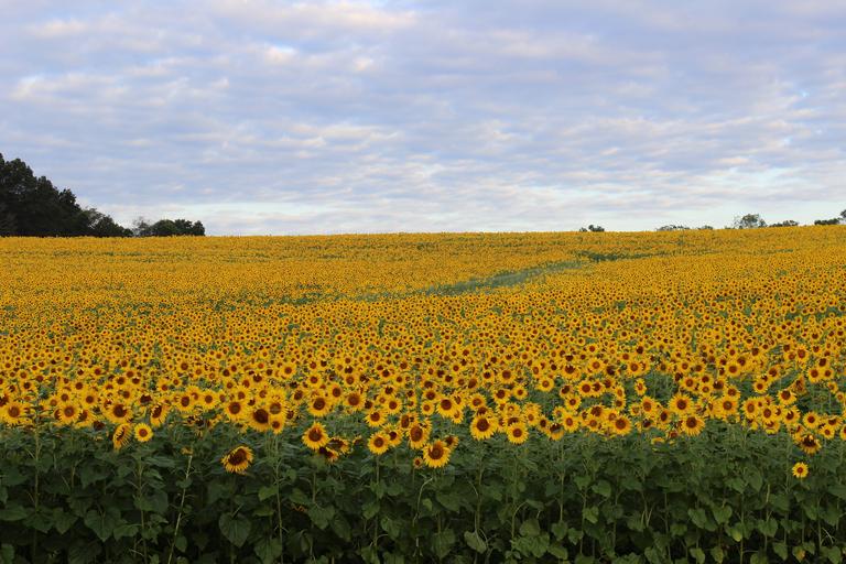 Keywords: sunflower blooming flower yellow field beautiful meadow