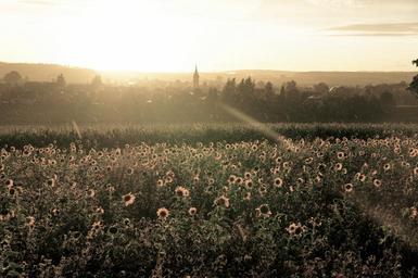 Keywords: sunflower field sunset landscapes sun flower nature light plant