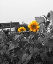 Keywords: sunflower garden flowers sun nature gardening agriculture plant yellow natural growth green leaf field environment petal floral botany botanical environmental orange black and white