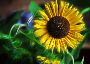 Keywords: sunflowers flowers yellow flowers large flowers summer flora flowering blooming sunflower ornamental sunflower plant a garden symmetry closeup ornament decoration the stems flower petals graphics mood wallpaper the background
