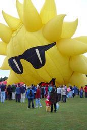 Keywords: Sunny Boy balloon.JPG Rising Sun The distinctive shape of Sunny Boy inflating ready to fly at the Balloons Over Waikato festival Own 2007-11-11 Follash Sports in New Zealand Balloons over Waikato N71325 aircraft