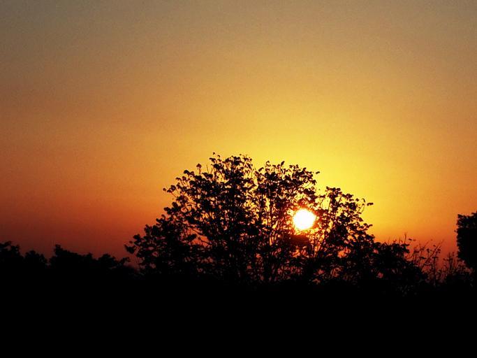 Keywords: sunrise sunset sky outdoor tree plant landscape field Beautiful sunrise captured through tree Beautiful sunrise captured through tree