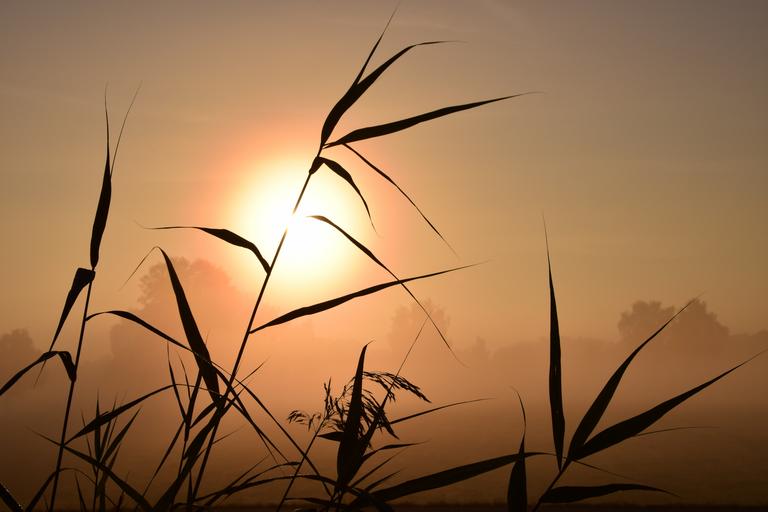 Keywords: sunrise back light mood autumn landscape morgenstimmung morning haze nature atmosphere silhouette morning mist grass plant red mourning farewell melancholy