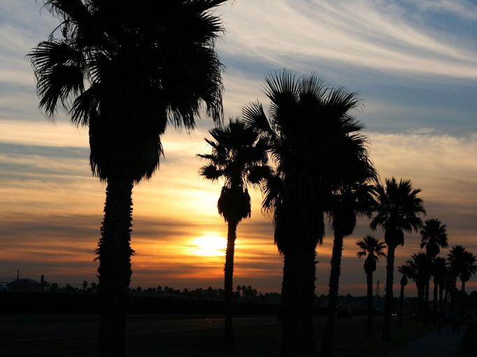 Keywords: sunrise california landscape huntington beach pacific coast palms