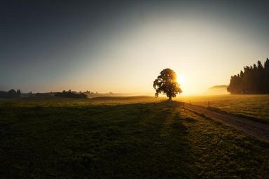 Keywords: sunrise fog tree grass fisheye