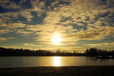 Keywords: sunrise lake stretch late autumn cool mood loneliness mirroring water sky morgenstimmung reflection autumn morning light east frisia