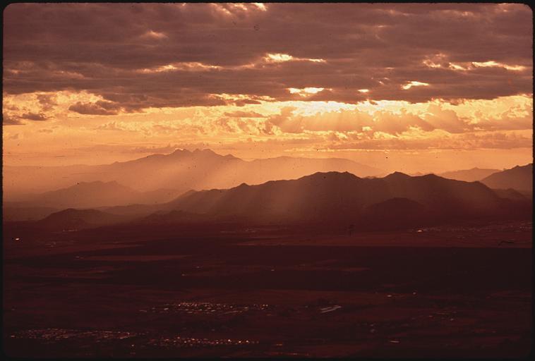 | Keywords: SUNRISE OVER SUPERSTITION MOUNTAINS. URBAN SPRAWL IN FOREGROUNDS - NARA - 544047.jpg Scope and content General notes 544047 Local identifier 412-DA-1554 Environmental Protection Agency 12/02/1970 - NARA-Author Keyes Cornelius M Cornelius Michael 1944- Photographer 8463989 <br /> Phoenix Maricopa county Arizona United States North and Central America inhabited place 4201846 33 433 -112 07 <br /> Still Picture Records Section Special Media Archives Services Division NWCS-S National Archives at College Park 8601 Adelphi Road College Park MD 20740-6001 06/1972 Record group Record Group 412 Records of the Environmental Protection Agency 1944 - 2006 Record group ARC 708 DOCUMERICA The Environmental Protection Agency's Program to Photographically Document Subjects of Environmental Concern compiled 1972 - 1977 Series ARC 542493 File unit File unit ARC Variant control numbers Agency-Assigned Identifier 026/54/001554<br /> NAIL Control Number NWDNS-412-DA-1554 Other versions <gallery> File SUNRISE_OVER_SUPERSTITION_MOUNTAINS _URBAN_SPRAWL_IN_FOREGROUNDS_-_NARA_-_544047 tif tif File SUNRISE_OVER_SUPERSTITION_MOUNTAINS _URBAN_SPRAWL_IN_FOREGROUNDS_-_NARA_-_544047 jpg jpg </gallery> NARA-cooperation PD-USGov Sunrises of the United States Superstition Mountains |