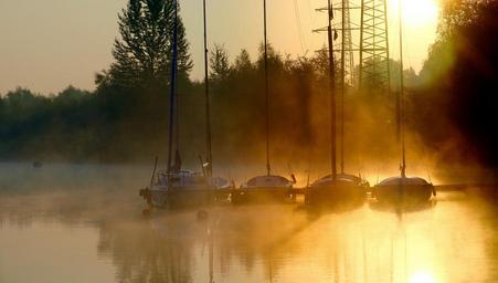 Keywords: sunrise phoenix lake dortmund boats water jetty port ship reflections sunset yacht