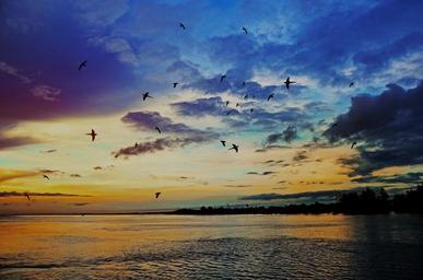 Keywords: sunrise sea birds sunset ocean summer nature sun water beach travel sky evening landscape vacation lifestyle dawn orange coast shore tropical morning sand sunlight