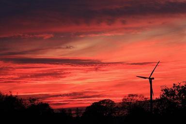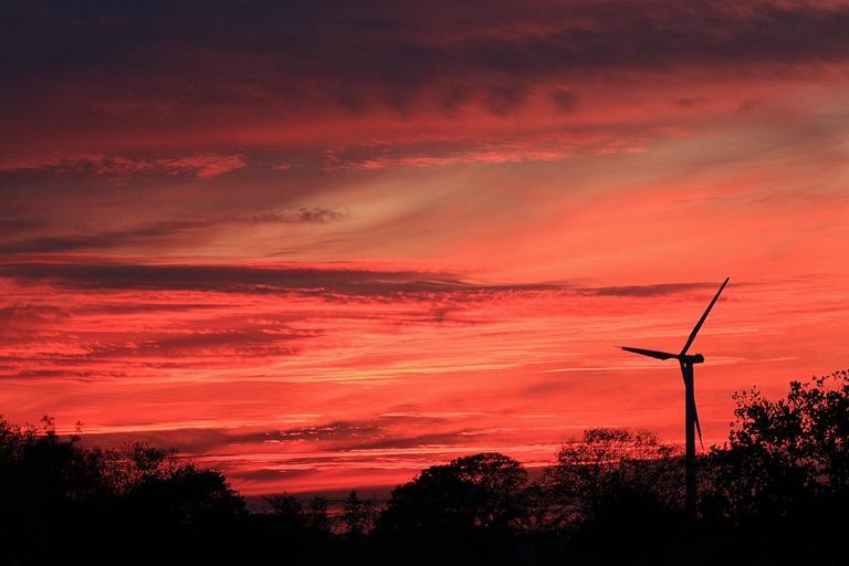 Keywords: sunset afterglow evening sky nature pinwheel wind turbine sun down