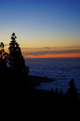 Keywords: sunset afterglow sky clouds selva marine tenerife canary islands trees treetop