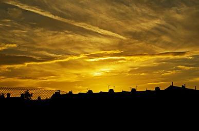 Keywords: sunset background houses house city england evening orange red night nature sun clouds cloudy weather