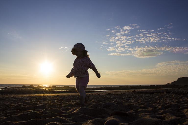 Keywords: sunset beach girl child ocean sea vacation sky summer nature horizon sand coast landscape shore orange silhouette