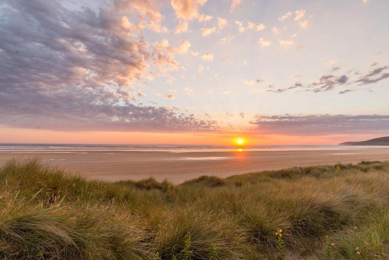Keywords: sunset beach grass dunes travel ocean sea landscape vacation sand coast sunrise scenic orange sun coastline light horizon outdoor seaside environment tourism nature sky water shore clouds