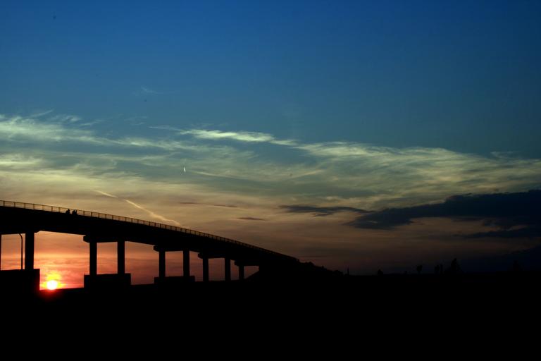 Keywords: sunset bridge sun red sky fire in the evening cloud