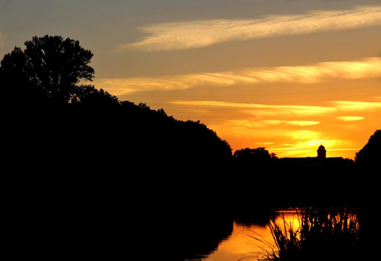Keywords: sunset castle river landscape summer czech republic river bank trees sun elbe evening scenery west heaven clouds holidays reflection sky