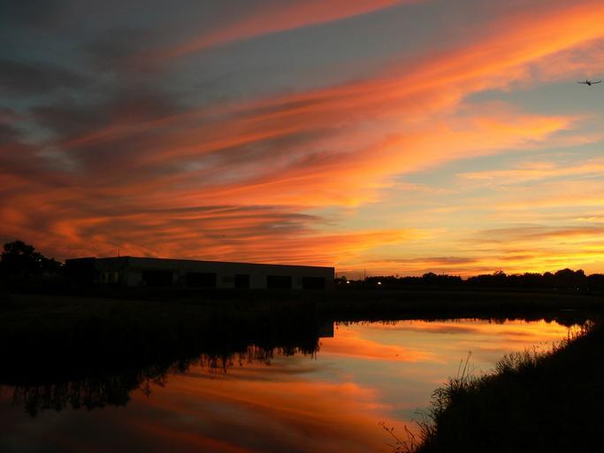 Keywords: sunset clouds scenic view background sunlight landscape dusk twilight evening nature sky water reflection silhouettes colorful chemtrails
