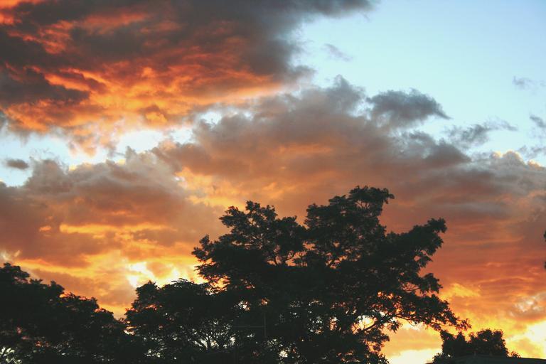 Keywords: sunset clouds soft orange yellow silhouette contrast glowing sky trees