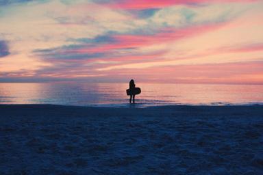 Keywords: sunset dusk beach sand silhouette ocean sea horizon sky clouds landscape