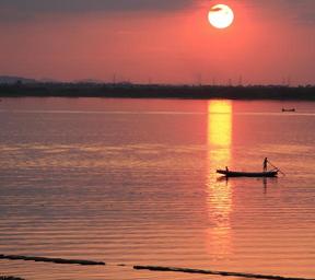 Keywords: sunset evening reflections sun nature landscape sky travel people orange light scenic golden