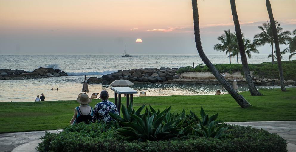 Keywords: sunset hawaii palm trees beach ocean hawaii beach summer travel beach sunset lagoon people person nature outdoors landscape vacation water sky tropical coast peaceful island shore colorful
