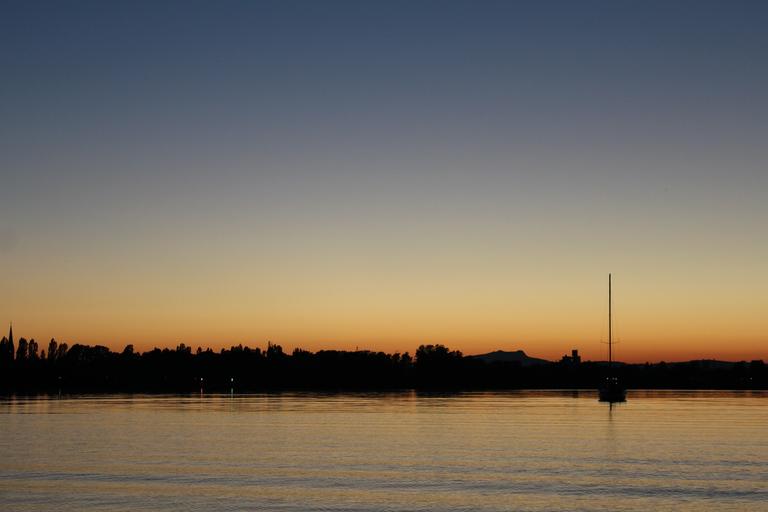 Keywords: sunset lake constance radolfzell sailing boat summer sun water lake sea silent boot
