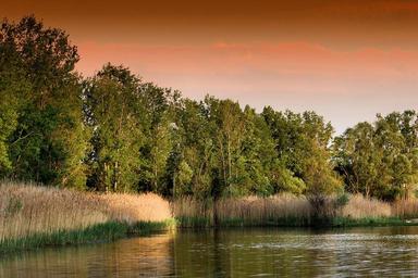 Keywords: sunset lake forest trees nature romance abendstimmung water reed reeds