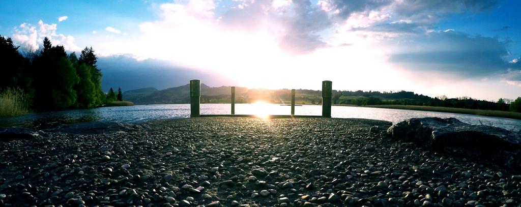 Keywords: sunset lake swim sun web nature abendstimmung clouds water landscape