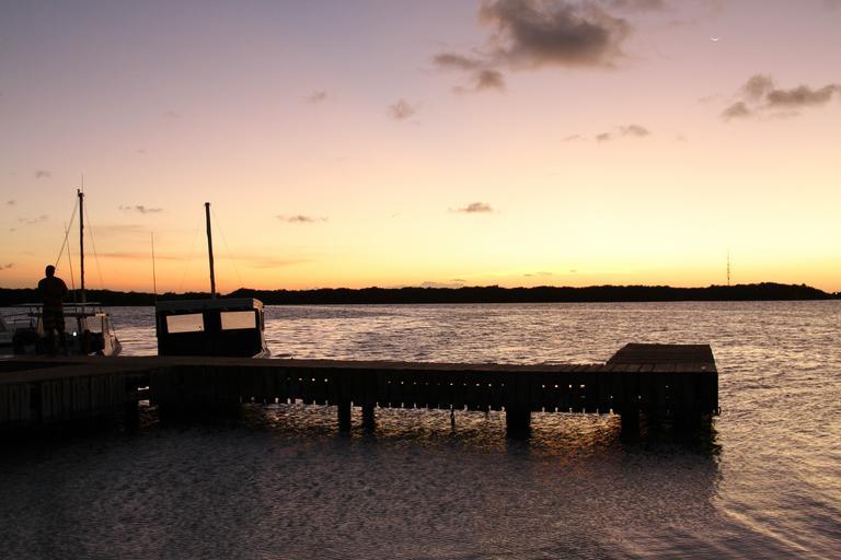 Keywords: sunset landscape lake pier boats horizon summer nature