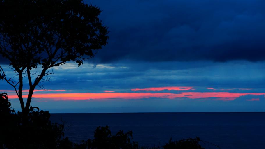 Keywords: sunset ocean blue and pink clouds tree twilight dark cloud evening horizon seascape trees romantic landscape sea seaside nature wallpaper background